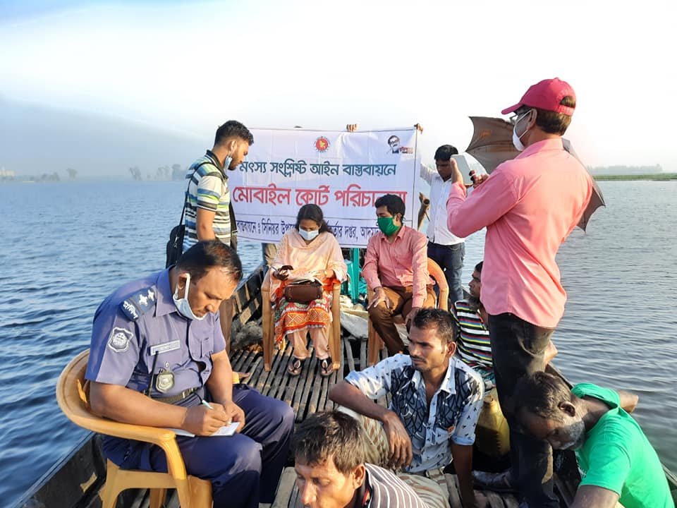 এ সময় উপজেলার ছাতনি-ঢেকড়া এলাকার আব্দুল কুদ্দুস, গোলাম মোস্তফা ও আতোয়ার রহমানকে আটক করে প্রত্যেকের দুই হাজার টাকা করে মোট ছয় হাজার টাকা জরিমানা আদায় করা হয়। পরে জব্দ জালগুলো সড়কে প্রকাশ্যে পুড়িয়ে ধ্বংস করা হয়।
